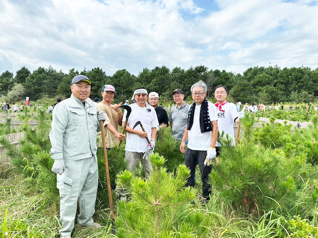 注:2022年11月に千葉県との森林整備協定に基づき、『SJ九十九里浜の森』として行った植林(1960本)の樹木の成長を促進するため、下草の除去(刈り取り)活動