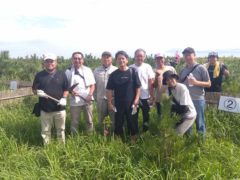 9月28日(日)に損保ジャパンの代理店会(JSA中核会)の主催で『損保ジャパン九十九里浜の森』の下草除去活動(注)があり、当社からは8名で参加してきました。